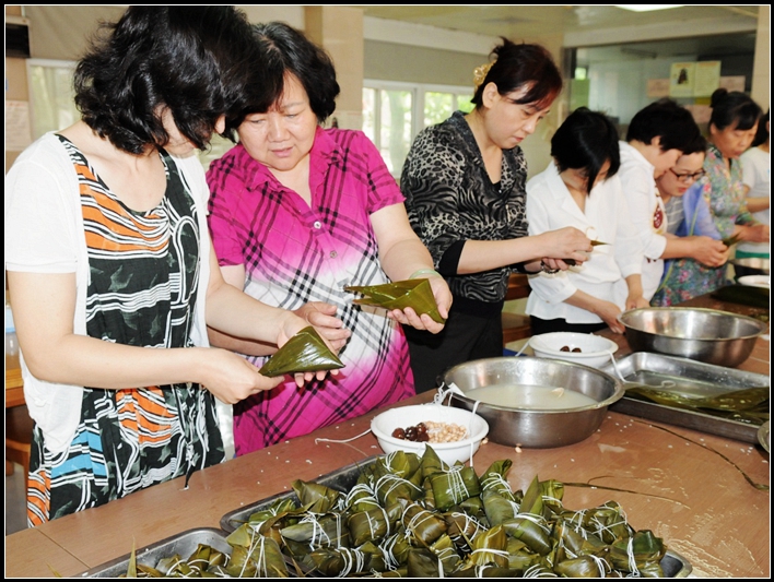 为能让职工在端午节吃上粽子,开发办提前几天便把包粽子用的糯米、粽叶、蜜枣等材料准备齐全,并为包粽子活动准备好场地。党办和工会的工作人员也积极准备,召集职工报名参加活动,并为大家做好服务工作。志愿者们按照时间要求到食堂积极参加包粽子活动,大家拿起粽叶便熟练的包起来,不会包的职工在旁边暗自学习,有的老职工还手把手教会那些不太会包的职工。大家围在一起包着粽子,聊着端午节的传统习俗,一时间欢声笑语,仿佛已经闻到了粽子的清香。