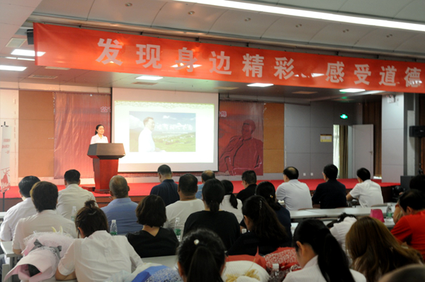 在发善心环节,有四位同志发表了自己的感触和感动,大家纷纷表示,要以他们为榜样,在今后的工作生活中,“积小善为大善,积小德为大德”,持之以恒,不畏困难,干一行,爱一行,钻一行,自觉的成为道德的传播者、践行者、宣传者,为我中心建设作出新的贡献。中心党委副书记刘伟峰上台发言,他朴实的话语引起了大家的思考和共鸣,他说到,一个能感动别人的人,一定是一个心想着别人的人,心想着集体的人;感动我们的事一定是我们想做还没有去做,或者没有去做到的“利他”的事情,这也是道德本义,是让我们收获感动的地方。
