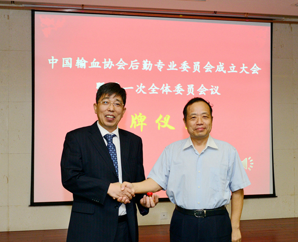 会上,孙绍忠副理事长宣读中国输血协会《关于分支机构负责人的任命决定》和《关于分支机构依托单位申请的批复》,任命河南省红十字血液中心主任王兆福担任后勤委主任委员,批准河南省红十字血液中心作为后勤委依托单位。朱永明理事长向王兆福主任委员颁发聘书,授依托单位铜牌和分支机构公章,并发表重要讲话。