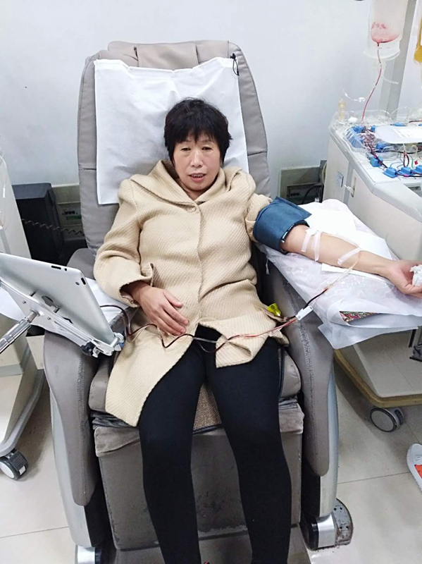 2017年11月13日,河南省红十字血液中心大学路献血屋。一位献血者正在捐献单采血小板,从容而淡定。她,就是我们大学路献血屋的保洁阿姨朱秋霞。