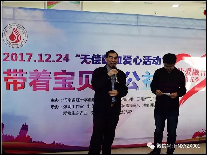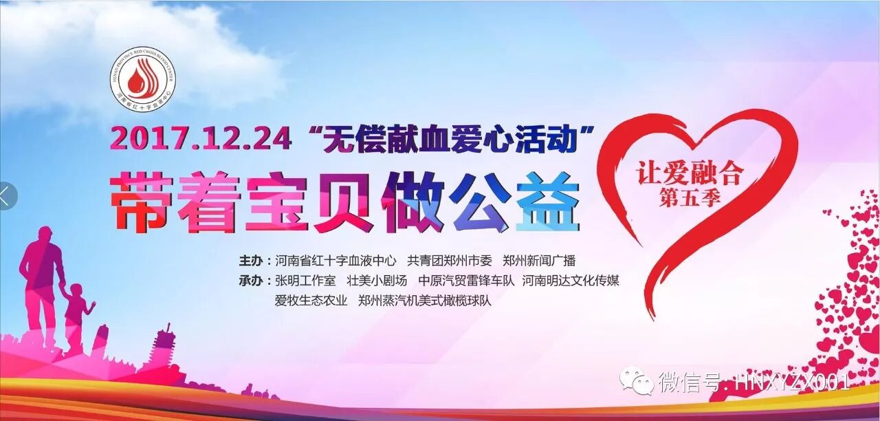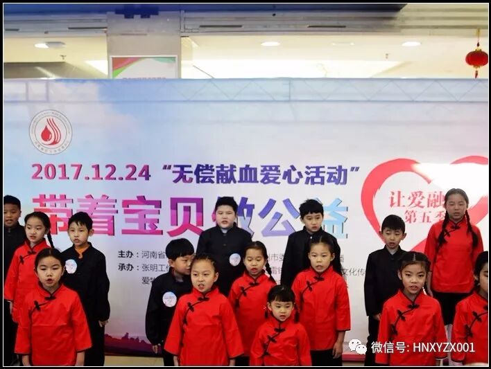 2017年12月24日河南省红十字血液中心、共青团郑州市委与郑州新闻广播、张明工作室共同发起第五季“带着宝贝做公益·无偿献血 让爱融合——做孩子的榜样”无偿献血活动。
