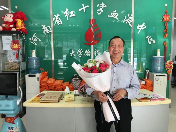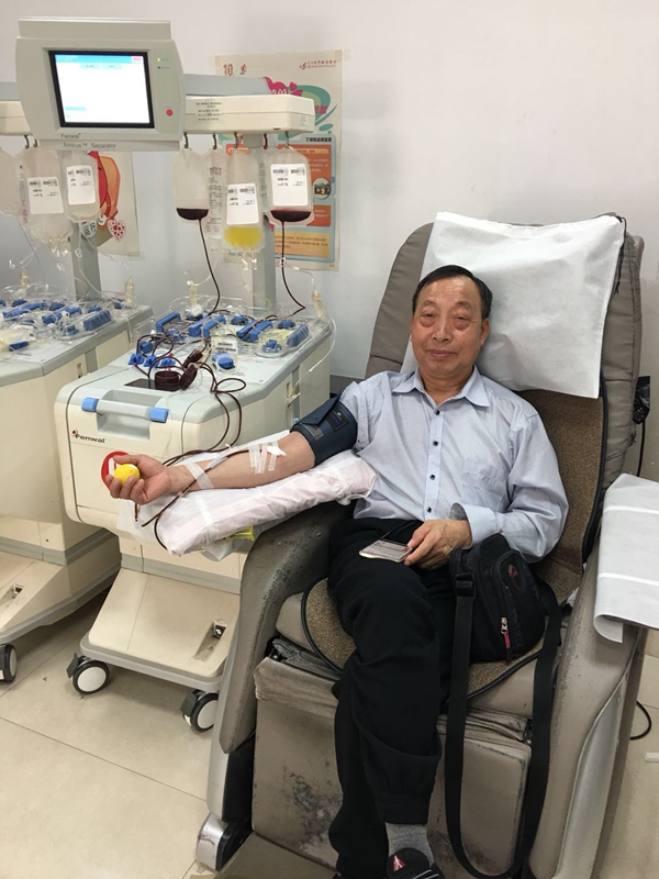 54岁的阳成友是郑州航院的一名电工,2009年的7月,他首次献血400毫升,从此开始了献血历程。2012年,他在定期献血过程中了解到血小板的相关知识。在得知成分献血可以帮助更多有需要的患者时,他义无反顾的加入到了捐献血小板的队伍中来,之后每隔半个月,只要身体条件允许,从未间断。他还骄傲的说:“我不仅在郑州献,在广州、深圳、南阳也都捐献过血小板。”我们不禁为他竖起了大拇指。