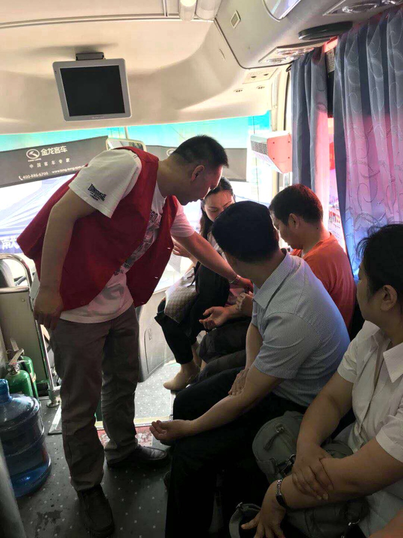 上午八点,在省直工委、省卫生计生委、省红十字会主办,省红十字血液中心承办的的“第71个红十字纪念日无偿献血暨造血干细胞捐献活动”现场,同志们按照中心宣传招募和采血科室安排,分别到省人民政府大院和省人民会堂为前来献血的省直单位职工提供优质志愿者服务,有的进行引导介绍,有的帮助保管衣物,有的发放证书、纪念品,有的送水、搀扶。虽然,同志们一个个忙手脚不停的满头大汗,但是,满脸的笑容却洋溢着发自内心的快乐。