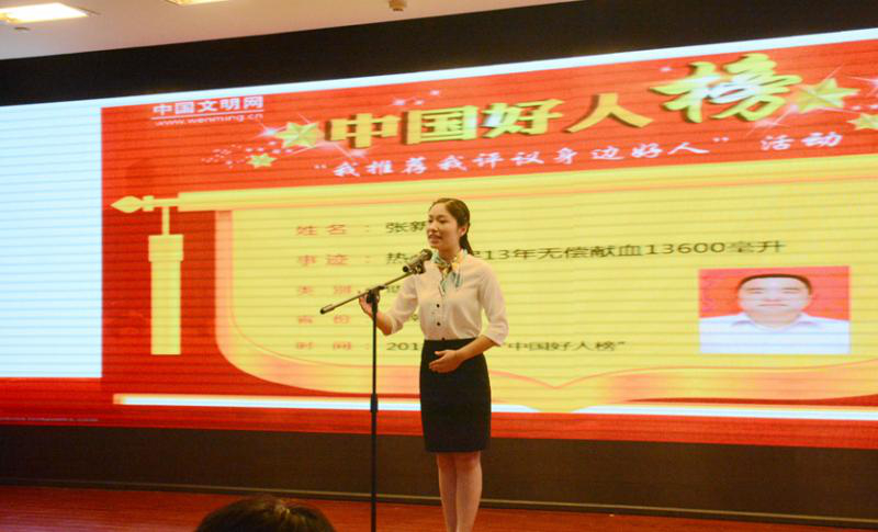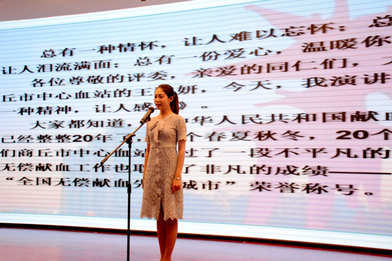 比赛中,参赛选手按照抽签顺序依次上台演讲,有的讲述了身边的工作伙伴用心用情服务献血者的感人故事,有的讲述了无偿献血志愿者满怀大爱的故事,有的描述了一幅幅献血者大爱无私、传递生命希望的感人画面,伴随着优美的音乐、画面精美的PPT,参赛者慷慨激昂、饱含深情讲述的感人故事,引起了台下评委和观众的阵阵共鸣,大家被无偿献血者和血液工作者默默奉献的坚持深深感动。