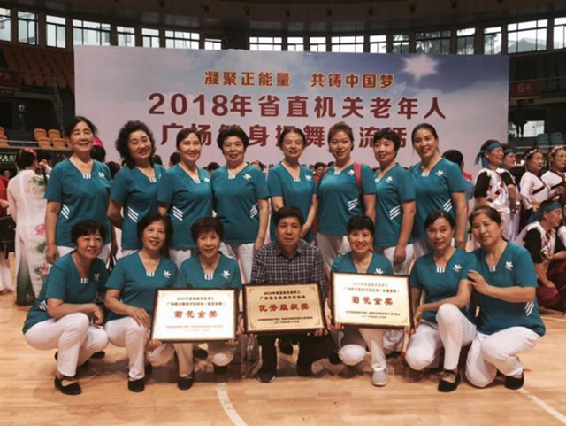 昨天下午,"增添正能量共筑中国梦"河南省直机关老年人广场健身操舞交流活动在省体育馆精彩落幕。我中心由退休人员组成的舞蹈队,历经近4个月的刻苦训练,克服天气炎热、基础较差、家庭事务多的不利因素,在强手众多的参赛队中,取得规定、自编套路两个"菊花金奖"和优秀组织奖,展现了血液中心退休人员积极进取、热爱生活、健康向上的良好精神风貌。本次交流活动由省委老干部局主办,共有省直机关、驻郑高校共21个单位700余人参加。
