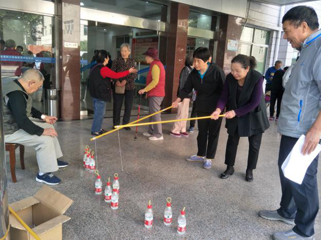 10月11日上午,秋风习习、天朗气清,离退科组织广大离退休老同志在单位院内举办秋季老年运动会,此次运动会共设五个活动项目:飞镖、钓瓶子、丢筷子、夹乒乓球和套圈。每个项目都受到老同志的喜爱,大家个个摩拳擦掌,积极参与、你先我后、井然有序,共有60余人参加,现场欢声笑语不断。