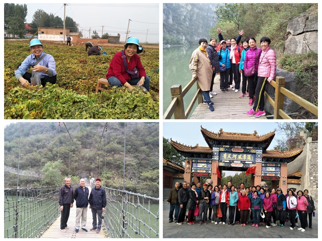 离退科一行首先来到位于温县的陈氏太极拳发源地陈家沟,在这里了解了陈氏太极拳的发展壮大过程,欣赏了精彩的太极拳表演。随后来到农家田间地头重现劳动人民本色,亲自采摘山药豆,体会采摘乐趣。