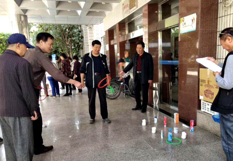 此次运动会从安全性和趣味性考虑,精心准备了5个活动项目,分别是飞镖、钓瓶子、丢筷子、套圈、倒数数。活动现场气氛热烈,紧张活泼,每个项目前都人流不断,老同志们个个热情高涨、积极参加。