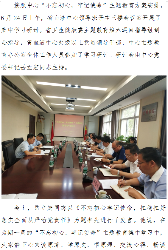 省血液中心领导班子开展 “不忘初心,牢记使命”主题教育集中学习研讨