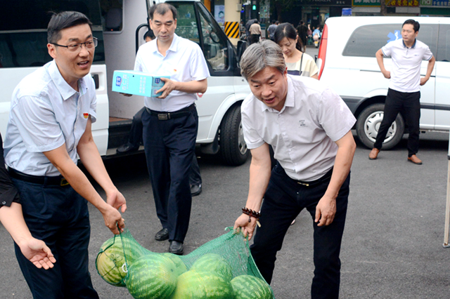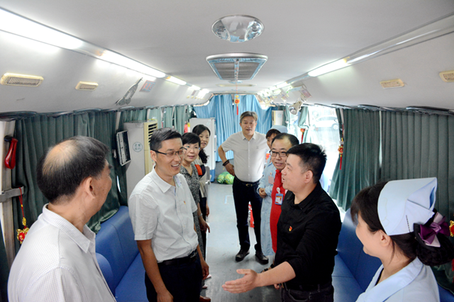 冒着38摄氏度的高温,带着对一线职工的牵挂,中心党委书记岳立宏、副主任程四国、党委副书记刘伟峰、副主任李建斌、副调研员李伍升等领导分别带领党委办公室、人事科、工会和 一线科室有关人员到市区和郊县4个固定采血点、9辆采血车以及供血科接送血班组,慰问顶烈日、冒酷暑奋战在采供血一线的工作人员,为他们送去西瓜、饮料等防暑降温物品。