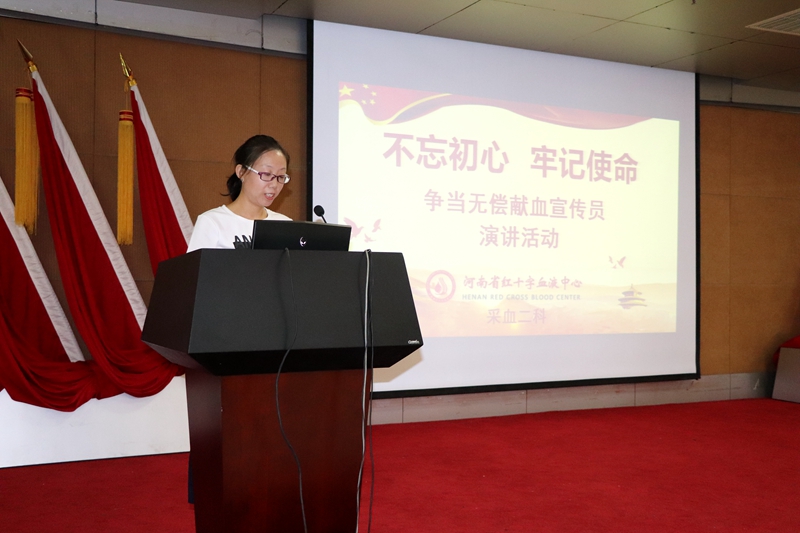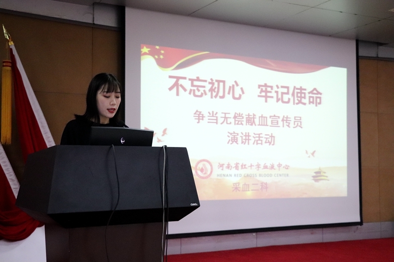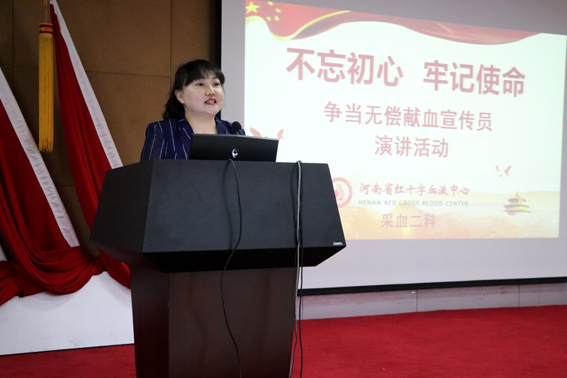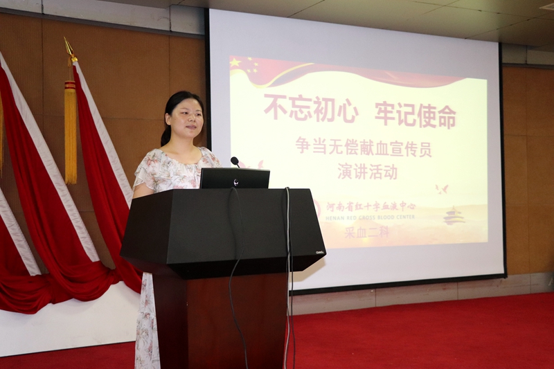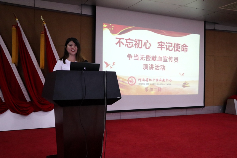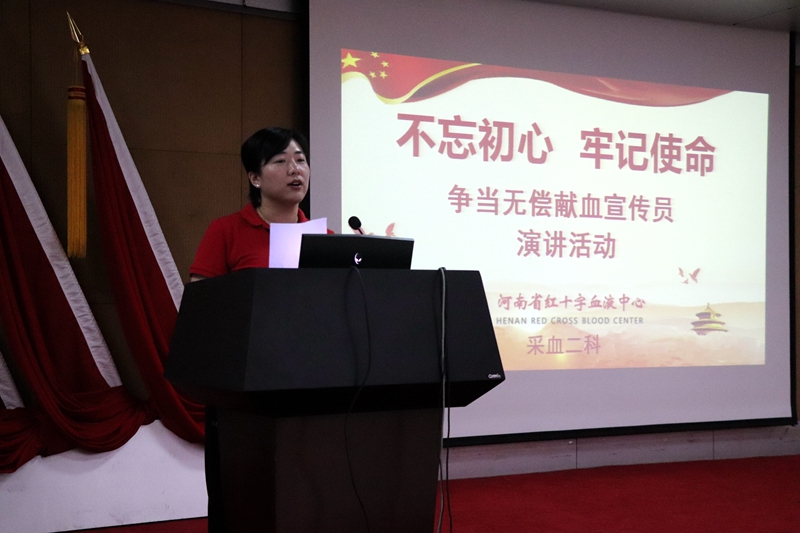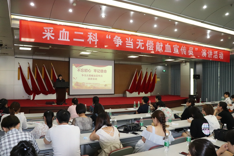 2019年8月16日下午4点,采血二科在河南省红十字血液中心七楼多功能厅举办了“不忘初心,牢记使命——争当无偿献血宣传员”演讲活动。科室参加演讲的25位选手从不同的侧面,不同的角度诠释了无偿献血的意义,讲述了无偿献血中百次献血者的故事。大家准备的内容形式多样,体裁风格各有千秋,充分展现了当代年轻职工的精神面貌。这次演讲活动从准备到举办,大家都是争先恐后报名,积极认真准备,沉着冷静登台,现场收到了意想不到的效果。张淑琴科长在最后总结时讲到:“这次演讲活动的开展,使我们大家对无偿献血工作有了更深层次的认识和理解,拓宽了今后工作的视野和思路,充分体现了我们的主人翁意识,为提升无偿献血服务工作奠定了基础,也看到了我们科室是一个团结、向上、具有凝聚力的和谐大家庭。今后,科室还会为大家提供更多的机会,让大家展示自己,也为中心的提质增效工作贡献我们微薄的力量!”。