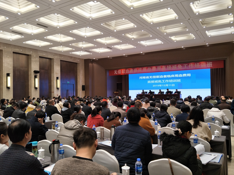 2019年12月11日郑州市及省直无偿献血者临床用血费用直接减免培训班在河南饭店顺利举办。此次培训工作会议是由河南省卫生健康委员会、郑州市卫生健康委员会联合举办,河南省红十字血液中心承办。省卫生健康委医政医管处杨继峰主任、省中医管理局陈艳主任、市卫生健康委医政医管处张岚处长、市中医管理局李广金副主任,郑州地区各县(市)卫生健康委医政医管科科长、省会71家医疗用血医院的主管院领导、医务科、信息、财务、输血等部门负责人,共计290余人参加了会议。