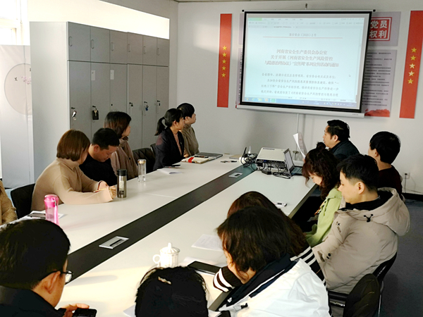 2020年1月17日,按照中心保卫科要求,检验科利用科室会议组织全体人员共同学习了《河南省安全生产风险管控与隐患治理办法》(以下简称《办法》)。