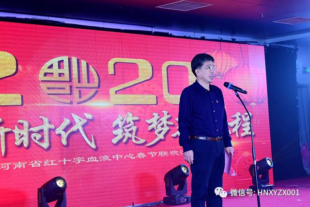 在1月16日下午为现职职工表演的联欢活动中,党委书记岳立宏与现场职工分享了四句话,一是热烈祝贺,祝贺2019年全体职工开创了各项工作新局面,采供血各项指标创了历史新高。二是衷心感谢,感谢各级党委政府的关心支持、广大无偿献血者的爱心奉献和全体干部职工的团结拼搏。三是心怀梦想,有梦想才有希望,有精神才有力量,要以习近平新时代中国特色社会主义思想为指引,全面贯彻委党组的各项部署,坚决做到初心如磐、使命在肩,努力开创采供血高质量发展的新局面。四是衷心祝愿,祝愿伟大祖国更加繁荣富强,血液中心明天更加灿烂辉煌,祝福每位职工新年快乐、心想事成。