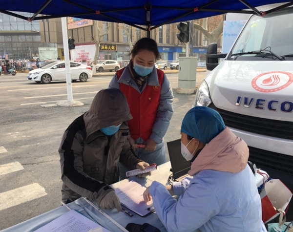 冬日的早上,街上非常冷清,到达献血点后,我们的同志分头行动,向过往的路人发放无偿献血宣传手册,给他们讲解无偿献血的注意事项,告诉他们针对疫情特殊时期我们所做的防范措施,让他们知道现在临床用血所面临的巨大压力。危难之际见真情,还是有许多热心市民参与无偿献血。张建军与高美霞夫妇、马寨居民刘利伟就是其中的三位,他们都是从这里匆匆路过,但是看到采血车后都放慢了脚步,耐心听我们的讲解,细致的了解无偿献血,还动员家属也参与到无偿献血中来。张建军对我们说:“虽然现在是疫情防控的特殊时期,但是如果大家都有顾虑,那医院病床上的等着用血的患者怎么办?”刘利伟大哥更加朴实:“献血车肯定都是经过了严格消毒的,大家做好防护就行,特殊时期,奉献爱心也是为防控疫情做贡献。”为他们的大爱点赞!