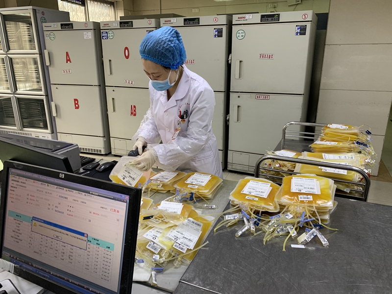 电话就是命令,时间就是生命。由于该名患者失血严重,预计需要大量血液支持手术的完成。值班人员放下手中电话,迅速向科长汇报,大家立即查看库存情况,及时调配血液,第一时间完成了紧急备血任务。经过医院的全力抢救,目前病人已脱离生命危险。此次手术的顺利进行既离不开医护人员的辛勤付出,同样也离不开特殊时期捋袖捐血、为爱逆行的无名英雄。截止4月11日晚,该名患者共使用悬浮红细胞11200毫升,单采血小板2个治疗量,冰冻血浆5600毫升,这是由近百位无偿献血者用爱心共同搭建的生命桥梁!