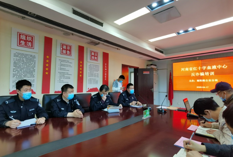 2020年4月17日下午3:00,保卫科组织各科室安全员及保卫科人员共35人在三楼会议室开会,郑州市公安局南阳路分局治安服务大队新同乐社区民警王力兵、案侦大队二中队(反侵财中队)指导员王建永等六名民警参加会议。