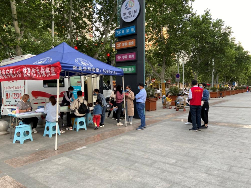5月11日下午五点,地铁关虎屯站和零零茂广场各停放着一辆省血液中心派出的采血“夜班车”,前来咨询、献血的爱心市民络绎不绝。